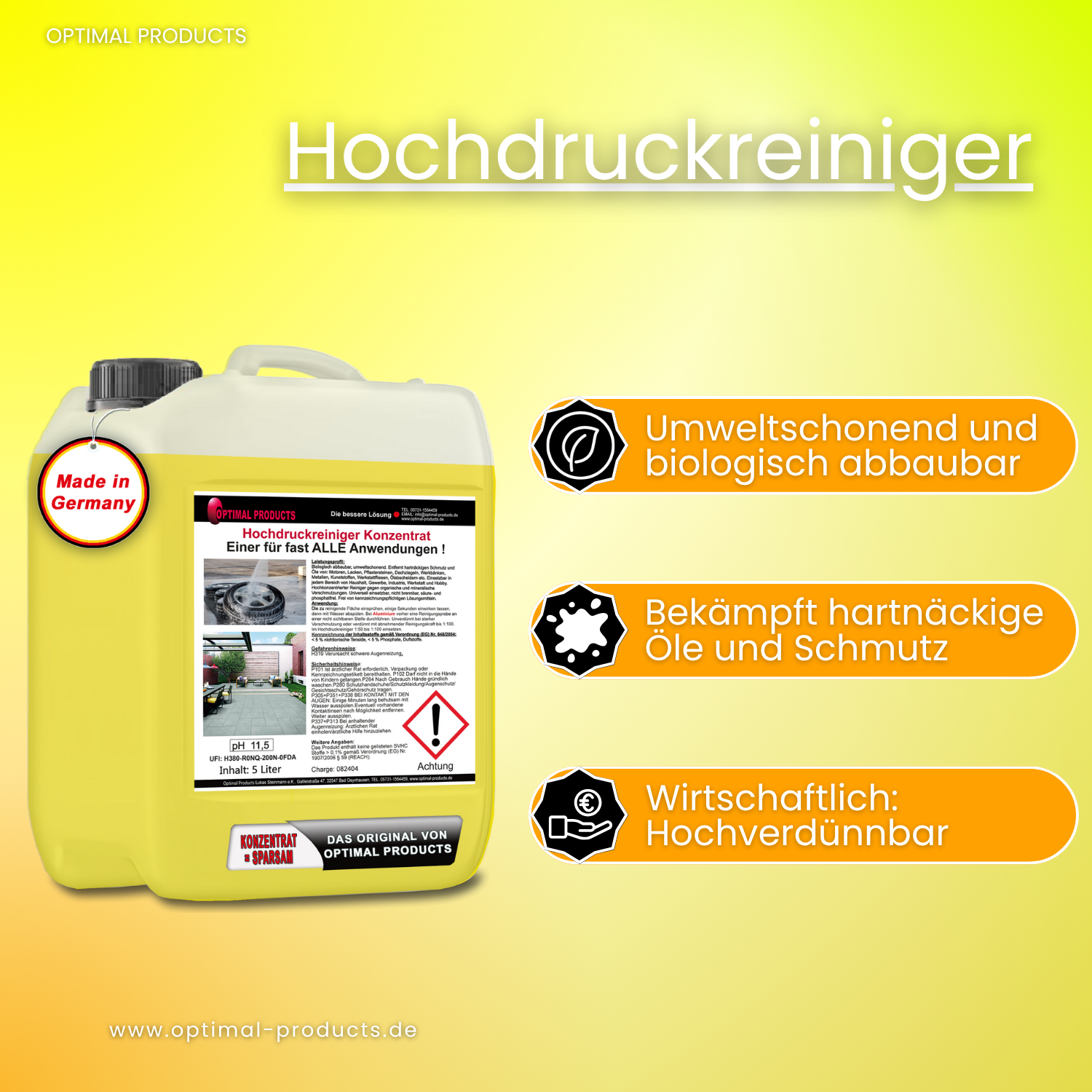 - Im Hochdruckreiniger 1:50 bis 1:100 einsetzbar.