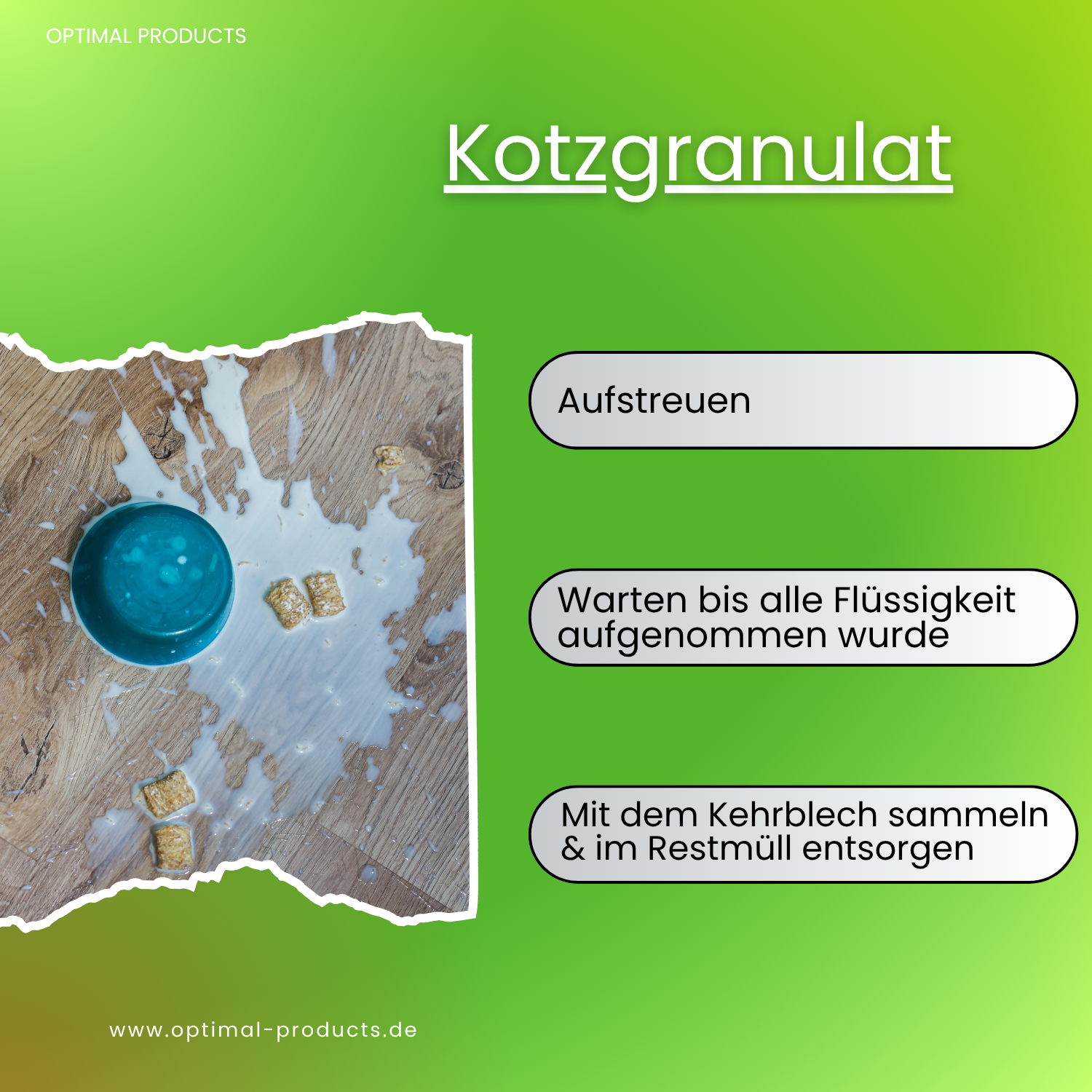 Granulat aufstreuen, kurz einwirken lassen bis